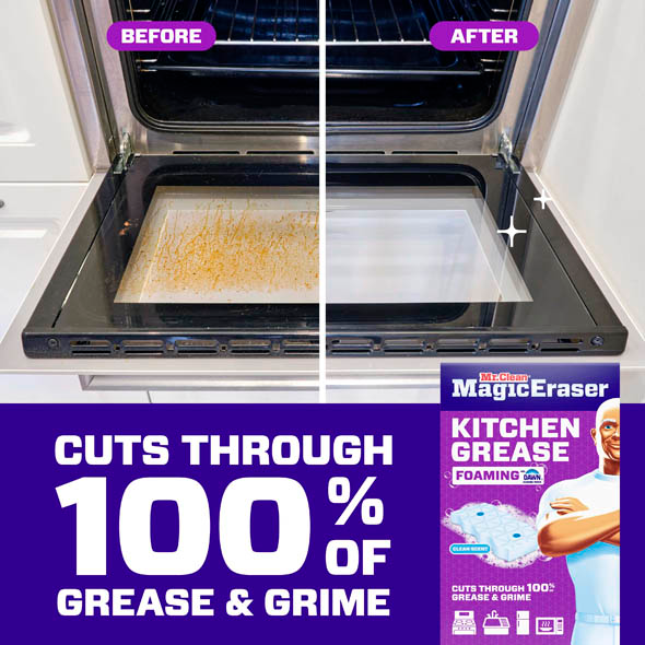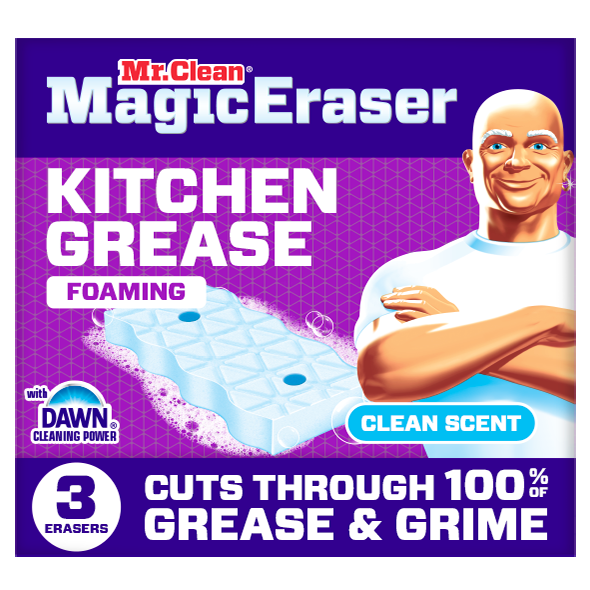 Tackle tough kitchen messes with Mr. Clean Magic Eraser Kitchen Grease Foaming erasers , the only erasers with the cleaning power of Dawn.