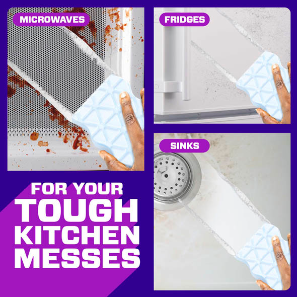 TOUGH ON KITCHEN MESSES – Perfect for microwaves, sinks, stovetops, refrigerators, air fryers and other surfaces with tough messes.