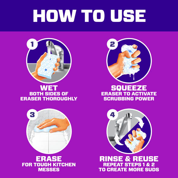 6-COUNT PACK – Includes 6 foaming erasers for long-lasting cleaning power across multiple kitchen messes.