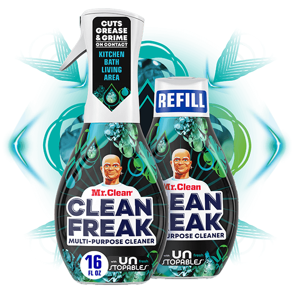 Clean Freak all purpose cleaning spray muscles through grime, tough dirt, and grease to make messes a distant memory. Use as a bathroom cleaner, shower cleaner and all around the house as an all purpose cleaner. Clean Freak leaves your home smelling fresh with the Unstopables Fresh scent you know and love. Add Mr. Clean Clean Freak to your arsenal of cleaning supplies today.
