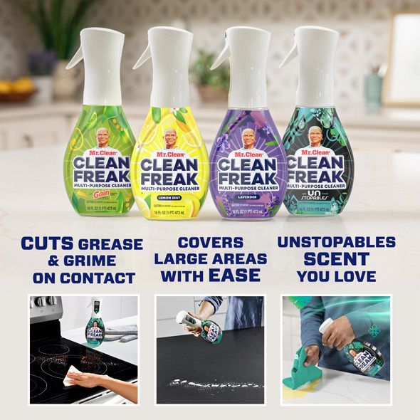 Clean Freak all purpose cleaning spray muscles through grime, tough dirt, and grease to make messes a distant memory.